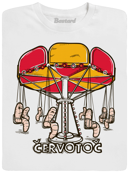Viete, ako vyzerá červotoč? Táto potlač vás zrejme vyvedie z omylu. Červíky zavesili vŕtanie na klinec a vydali sa užívať si pozemských radostí na Matejsku púť, kde sa povozili na tomto veľkolepom retiazkovom kolotoči, teda červotoči. Vďaka tejto červej záhaľke bude tohtoročná úroda jabĺk úplne výnimočná.