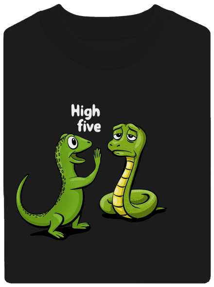 Čau had, daj mi päť! Ehm, tak toto nevyzerá ako ideálne zoznámenie medzi plazmi. Chudák had, jašterici dá ťažko high one. Je z toho akurát celý otrávený, a to nemá v tele ani kvapku jedu, pretože je škrtič. Jašterica si koleduje o slušnú lekciu. Ak sa neospravedlní, nasadí jej rozladený had poriadny golier. To už potom nebude rátať prsty, ale anjelikov. Musí sa predsa naučiť správať k svojim hendikepovaným spoluplazom. Tričko nielen pre teraristov.