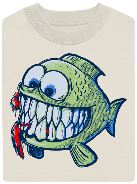 Jo, taká kúpačka v Amazónii nie je pre žiadnych kúpeľných povaľačov. Človek sa ide trochu zmočiť a razom je ohlodaný až na kosť. Naša roztomilá hladná piraňka s vybrúsenými hryzákmi z teba narobí ementál, len to fikne. Táto rybka rozhodne nie je zlatá a nesplní ti ani posledné želanie. Niečo ťa žerie? Chceš nahliadnuť do svojho vnútra? Potom je toto tričko tvoje. Chramst!
