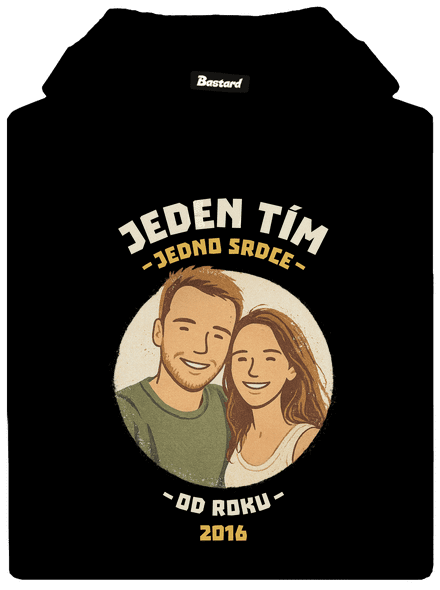 Jeden tím, jedno srdce. Nahraj fotku seba a svojej drahej polovičky, najlepšieho kamoša alebo kohokoľvek, s kým ťaháš za jeden povraz. Fotku graficky štylizujeme a zasadíme do designu, ktorý ukáže, že idete spolu. Stačí už len doplniť rok, kedy to všetko začalo, a máš originálnu potlač s vlastným príbehom.