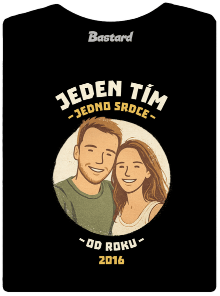 Jeden tím, jedno srdce. Nahraj fotku seba a svojej drahej polovičky, najlepšieho kamoša alebo kohokoľvek, s kým ťaháš za jeden povraz. Fotku graficky štylizujeme a zasadíme do designu, ktorý ukáže, že idete spolu. Stačí už len doplniť rok, kedy to všetko začalo, a máš originálnu potlač s vlastným príbehom.