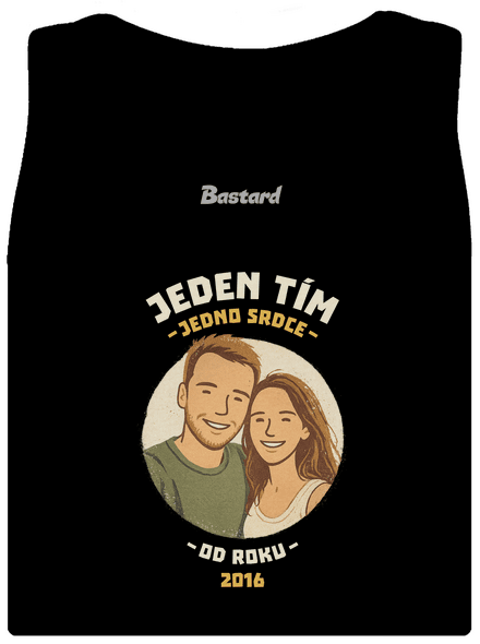Jeden tím, jedno srdce. Nahraj fotku seba a svojej drahej polovičky, najlepšieho kamoša alebo kohokoľvek, s kým ťaháš za jeden povraz. Fotku graficky štylizujeme a zasadíme do designu, ktorý ukáže, že idete spolu. Stačí už len doplniť rok, kedy to všetko začalo, a máš originálnu potlač s vlastným príbehom.