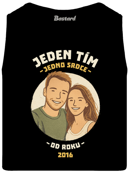 Jeden tím, jedno srdce. Nahraj fotku seba a svojej drahej polovičky, najlepšieho kamoša alebo kohokoľvek, s kým ťaháš za jeden povraz. Fotku graficky štylizujeme a zasadíme do designu, ktorý ukáže, že idete spolu. Stačí už len doplniť rok, kedy to všetko začalo, a máš originálnu potlač s vlastným príbehom.