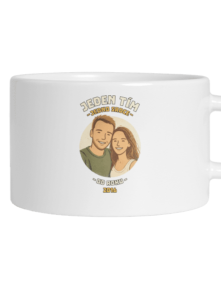 Jeden tím, jedno srdce. Nahraj fotku seba a svojej drahej polovičky, najlepšieho kamoša alebo kohokoľvek, s kým ťaháš za jeden povraz. Fotku graficky štylizujeme a zasadíme do designu, ktorý ukáže, že idete spolu. Stačí už len doplniť rok, kedy to všetko začalo, a máš originálnu potlač s vlastným príbehom.