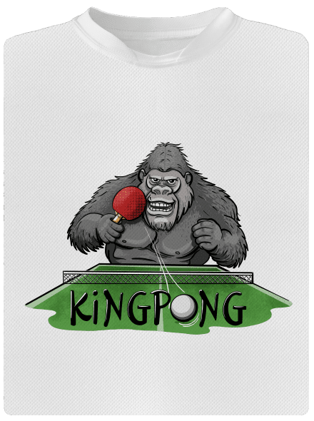 V grafike potlače je gorila King Kong s pálkou na stolný tenis, ktorý hrá ping-pong. Potlač teda spája dve rozdielne myšlienky do jedného humorného zobrazenia. Je vhodný pre všetkých hráčov ping pongu a milovníkov slávneho filmu, ktorí nechýbajú zmysel pre humor.