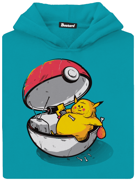 Ako asi vyzerá taký Pokémon v dôchodku? Napríklad Pikachu, zobrazený na našej potlači, si očividne hovie vo svojom Pokéballe, pozerá televíziu, je u toho smažené stehienka, utešene tlstne... a neholí sa. Skrátka nikto nemládneme, len dúfajme, že milý Pikachu zo svojho Pokéballu nevytlstne! Túto vtipnú potlač ponúkame ako na dámských a pánskych tričkách, tak i na pánskych mikinách.