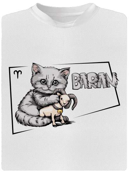 Na tejto potlači je mačka, ktorá namiesto typického mačacieho inštinktu loviť a bojovať objíma malého baránka s láskyplnou nehou. Tento obrázok ilustruje nielen mačacie mäkké srdce skryté pod ich nezávislým výzorom, ale tiež odráža povahu tých, ktorí sa narodili pod znamením Barana - známych svojou odvahou a vodcovskými schopnosťami, ale aj schopnosťou prejaviť nehu a starostlivosť. Je to perfektná potlač pre milovníkov mačiek, ktorí chcú ukázať svoju jedinečnosť a zmysel pre humor.