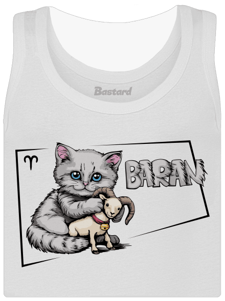 Na tejto potlači je mačka, ktorá namiesto typického mačacieho inštinktu loviť a bojovať objíma malého baránka s láskyplnou nehou. Tento obrázok ilustruje nielen mačacie mäkké srdce skryté pod ich nezávislým výzorom, ale tiež odráža povahu tých, ktorí sa narodili pod znamením Barana - známych svojou odvahou a vodcovskými schopnosťami, ale aj schopnosťou prejaviť nehu a starostlivosť. Je to perfektná potlač pre milovníkov mačiek, ktorí chcú ukázať svoju jedinečnosť a zmysel pre humor.