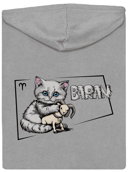 Na tejto potlači je mačka, ktorá namiesto typického mačacieho inštinktu loviť a bojovať objíma malého baránka s láskyplnou nehou. Tento obrázok ilustruje nielen mačacie mäkké srdce skryté pod ich nezávislým výzorom, ale tiež odráža povahu tých, ktorí sa narodili pod znamením Barana - známych svojou odvahou a vodcovskými schopnosťami, ale aj schopnosťou prejaviť nehu a starostlivosť. Je to perfektná potlač pre milovníkov mačiek, ktorí chcú ukázať svoju jedinečnosť a zmysel pre humor.