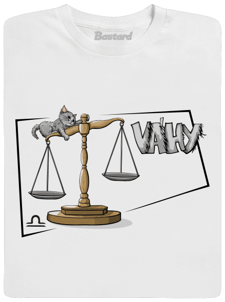 Na potlači je zobrazená mačka, ktorá si pohodlne odpočíva na jednom ramene váh. Tento obrázok s nadsádzkou ukazuje, ako sa Váhy usilujú o rovnováhu, ale niekedy sa to môže trochu nakloniť na jednu stranu. Mačka, symbolizujúca pokoj a rovnováhu, reprezentuje tých, ktorí sa narodili pod týmto vzdušným znamením a vážia si pokoj a harmóniu vo svojom živote. Je to perfektná potlač pre milovníkov mačiek, ktorí chcú ukázať svoju jedinečnosť a zmysel pre humor.