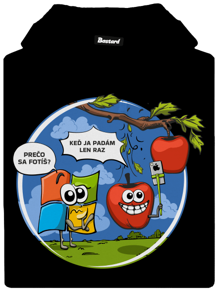 - Mikina na zips, ktorá má potlač na chrbáte.