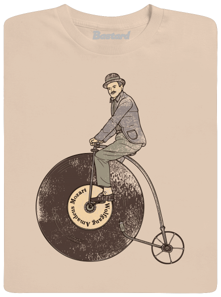 Pán na tejto krásnej retro potlači frčí na kostitrasu – a tiež na Wolfgangu Amadeu Mozartovi. A na čom frčíš ty? Máš radšej skôr klasiku, oldies alebo pop? Ci už frčíš na akémkoľvek štýle hudby, pokiaľ zároveň frčíš i na vintage tématike, táto potlač s gramofónom – kostitrasom je niečo pre teba.