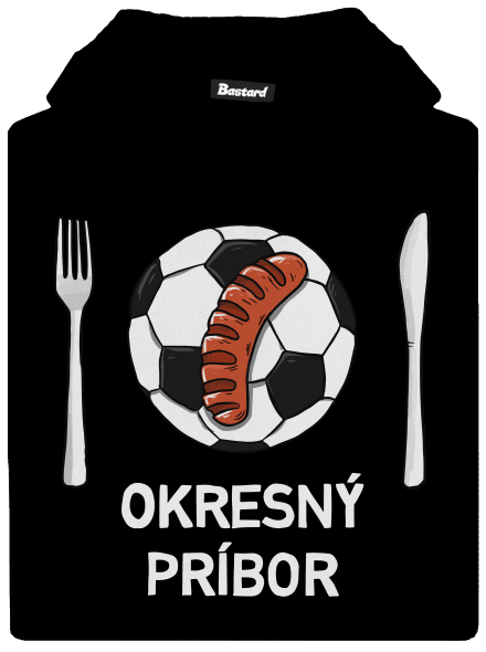 Okresný príbor, komické spojenie medzi športom a jedlom. Futbal a klobása k sebe neodmysliteľne patria. Tiež si dáte radi? Táto potlač je pre každého fanúšika dobrého futbalu a jedla.