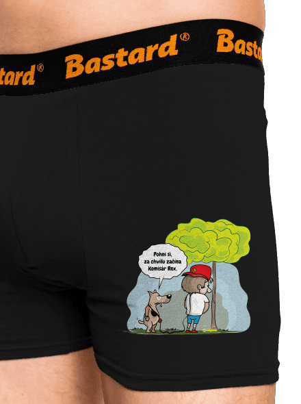 Každý zodpovedný chovateľ psov vie, že neradno podceňovať výchovu a výcvik. Potom sa ľahko môže prihodiť, že sa z vášho domáceho miláčika vykľuje drzý čokel a stane sa vašim pánom. Text v grafike: „Pohni si, za chvíľu začína Komisár Rex.“