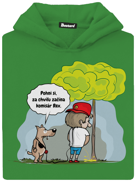Každý zodpovedný chovateľ psov vie, že neradno podceňovať výchovu a výcvik. Potom sa ľahko môže prihodiť, že sa z vášho domáceho miláčika vykľuje drzý čokel a stane sa vašim pánom. Text v grafike: „Pohni si, za chvíľu začína Komisár Rex.“