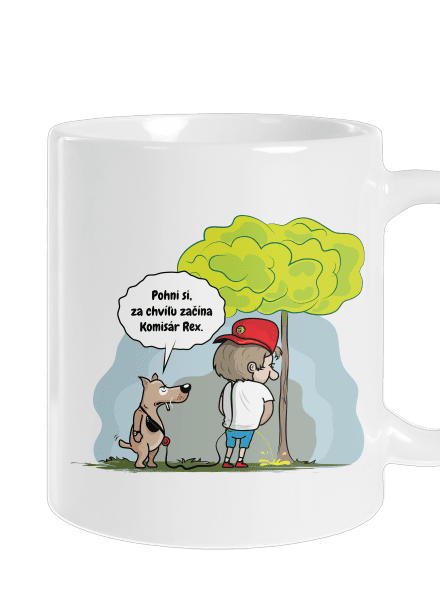 Každý zodpovedný chovateľ psov vie, že neradno podceňovať výchovu a výcvik. Potom sa ľahko môže prihodiť, že sa z vášho domáceho miláčika vykľuje drzý čokel a stane sa vašim pánom. Text v grafike: „Pohni si, za chvíľu začína Komisár Rex.“