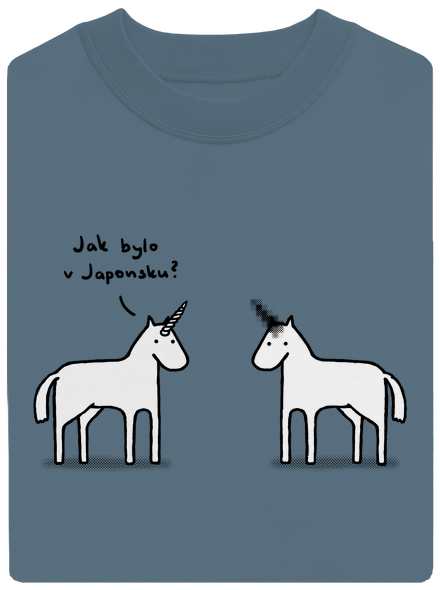 Japonsko je krásna krajina, ale ako každá má aj svoje muchy. Jedna si práve sadla na nášho jednorožca Fandu - vášnivého svetobežníka. Ten si priviezol z krajiny vychádzajúceho slnka okrem obohraného saké aj vskutku originálny suvenír. Zrejme strkal svoj roh, kam nemal. Stále tí vŕta hlavou, o čo ide? Potom bude potrebné doplniť si medzeru vo "vzdelaní" a pozrieť sa na nejaký ten japonský pornofilm. Japonci totiž takto nekompromisne cenzurujú takú tú vec ... už vieš? Toto tričko pobaví všetkých znalcov a tých neznalých zaujme. Nudiť sa s ním tak rozhodne nebudeš!