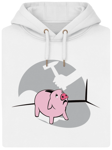 Pozor, tu sa schyľuje k vražde! Chudák prasiatko už sa trasie od strachu - kvôli čomu padne tentoraz? Kvôli dovolenke pri mori? Novej televízii? Kvôli automobilu, alebo snáď vianočným darčekom? Aj keby boli úmysly držiteľa kladivá sebelepšie, prasiatku asi náladu len tak nezlepšia, ty si ale novým tričkom s vtipnou potlačou náladu vylepšiť môžeš, aj za cenu zruinovaného prasiatka s úsporami.