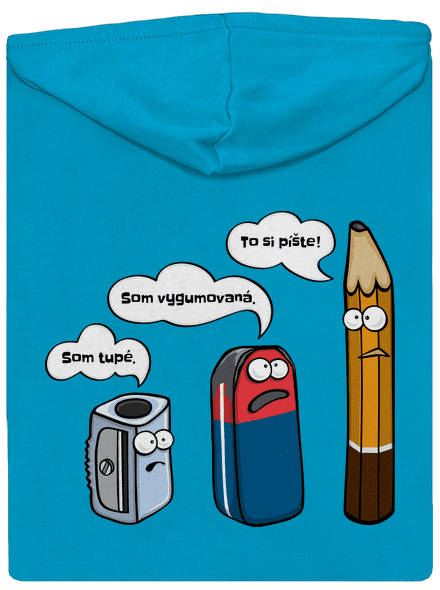 - Mikina na zips, ktorá má potlač na chrbáte.