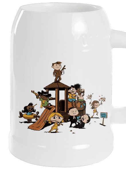 Táto potlač ponúka nápaditý a roztomilý pohľad na kultové postavy z filmov Quentina Tarantina. Namiesto drsných filmových scén trávia čas na detskom ihrisku. Každá postava je zobrazená ako dieťa, čo dodáva humor a nečakanú nevinnosť ich inak tvrdým a ostrieľaným charakterom. Tento dizajn je skvelým spôsobom, ako ukázať svoju lásku k Tarantinovým filmom so štipkou hravosti a nostalgie.