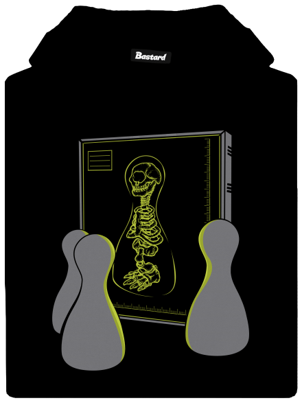 Ako by asi vyzeral röntgen figúrky na Človeče, nehnevaj sa? Majú tieto figúrky kosti, alebo sú skôr bezchrbtový? Nad tým sa zamýšľal náš grafik RAX a vznikla tak táto potlač so štyrmi figúrkami obľúbenej hry Človeče, nehnevaj sa.