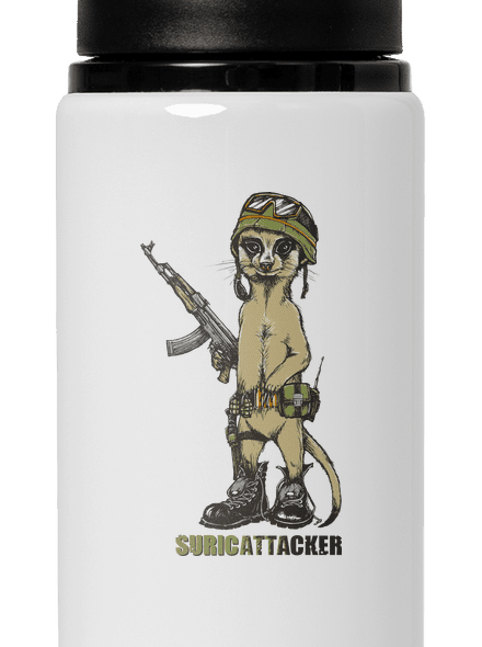 Surikata útoči! Daj si pozor na túto surikatu v plnej poľnej, vyzerá dosť nebezpečne. A určite má neďaleko schované posily. Skrátka a dobre, so surikatami je lepšie vychádzať a veľmi ich nedráždiť, zvlášť ak majú baganče, prilbu a zbraň. Potlač s ozbrojenou surikatou si môžeš objednať na rôznofarebných dámskych i pánskych tričkách.