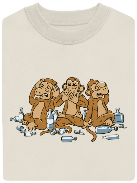 To bol zas včera žúr! Jeden nič nepočuje, pretože si odpálil ušné bubienky, keď zaspal u repráku. Druhý nehovorí, pretože sústavne lieta s plnými ústami na záchod. A tretí ten radšej nechce nič vidieť, ani to video, kde nahý tancoval na stole okolo tretej ráno. Toto je asi tá najstrašnejšia opica v histórii, lepšie povedané trojnásobná opica. Tiež máš občas trojnásobne vymetené a zbieraš sa z toho ďalšie tri dni? Nezúfaj, kúp si toto tričko a všetci už budú vedieť, že s tebou práve nie je reč.