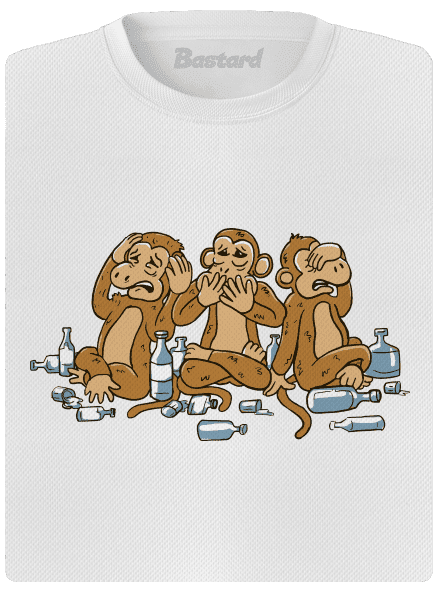 To bol zas včera žúr! Jeden nič nepočuje, pretože si odpálil ušné bubienky, keď zaspal u repráku. Druhý nehovorí, pretože sústavne lieta s plnými ústami na záchod. A tretí ten radšej nechce nič vidieť, ani to video, kde nahý tancoval na stole okolo tretej ráno. Toto je asi tá najstrašnejšia opica v histórii, lepšie povedané trojnásobná opica. Tiež máš občas trojnásobne vymetené a zbieraš sa z toho ďalšie tri dni? Nezúfaj, kúp si toto tričko a všetci už budú vedieť, že s tebou práve nie je reč.