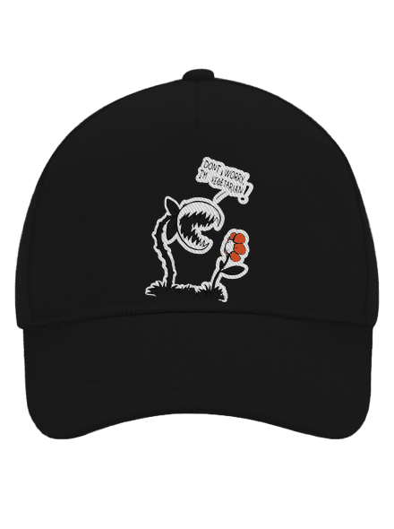 Neboj sa, ja som vegetarián, uisťuje masožravka na obrázku. No, ťažko povedať, či je to pre nedôverčivo sa tváriacu kvetinku na obrázku práve dobrá správa. Ale masožravka vegetariánka? Kto to kedy videl? Ju, aj jej trochu vystrašenú kamarátku môžeš mať na tričku alebo mikine. Natlačíme ti ich kvalitnou sieťotlačou a rozhodne sa nemusíš obávať – potlač i tričká sú úplne neživočíšneho pôvodu!