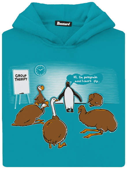 Vitaj na skupinovej terapii. Predstav sa nám a povedz: aký je tvoj problém? Ak si taktiež vták a máš tiež problém s lietaním ako tu prítomní, určite tu nájdeš pochopenie a tvoje splíny ťa tu nepochybne opustia. Kúp si tričko s potlačou vtáčej terapie a už si nikdy nebudeš pripadať osamotene - vždy sa totiž nájde veľa ľudí s rovnakým problémom.