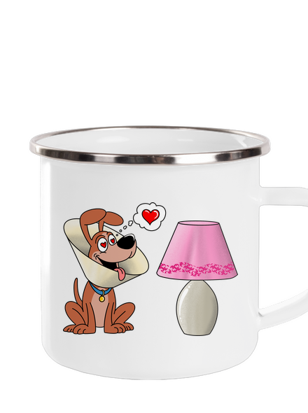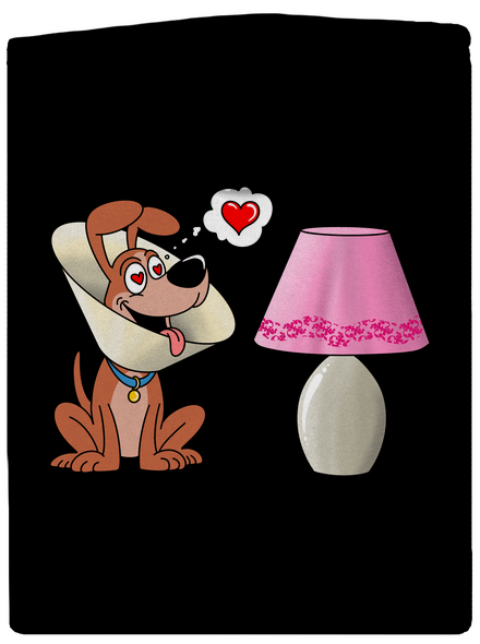 Na obrázku je pes s ochranným golierom, ktorý vyzerá podobne ako tienidlo lampy. Lampu si teda mylne pomýlil s fenkou do ktorej sa zamiloval.