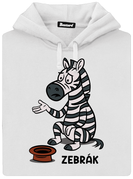 Slovná hračka, ktorá spája zvierací svet so svetom ľudskej biedy – a robí to s nadsadením a vtipom. Smutná zebra sediaca na chodníku s klobúkom natiahnutým pre drobných je parádnym vizuálnym vtipom na tému „keď sa zo zebry stane žobrák“. Ideálne pre všetkých, ktorí milujú čiernobiely humor, zvieratá a tričká, ktoré hovoria viac ako tisíc slov. Pretože aj zebra môže mať ťažký deň...