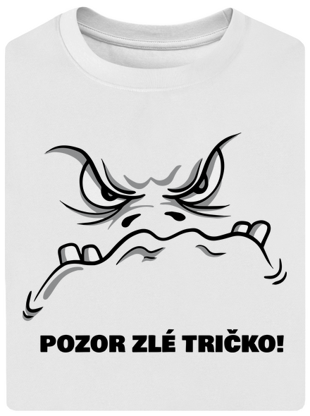 Pozor, ja som zlé tričko" Pokiaľ ti to nie je jasné už z názvu, tak ťa snáď presvedčí výraz mojej tváre. Nie, nie je to tým, že je tričko pokrčené, i keď to tak na prvý pohľad môže vyzerať. Nehraj sa so mnou lebo ti dám